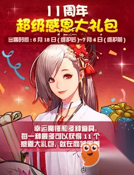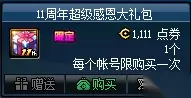 商城上架11周年超级感恩大礼包,售价1111点券无法使用代币券。