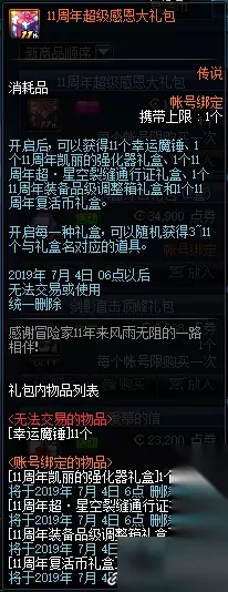 dnf11周年感恩大礼包有什么?11周年感恩大礼包奖励内容有哪些?值得购买吗?还不清楚的小伙伴看过来,这里233乐园233乐园小编为大家带来dnf11周年感恩大礼包奖励内容一览的详细介绍!有兴趣的小伙伴不要错过喔! dnf11周年感恩大礼包奖励内容一览