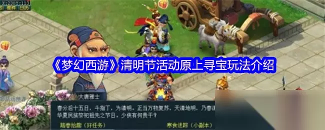 梦幻西游游戏中清明节活动即将在2025年4月2日12:00开启,其中活动之一寒食迷踪是副本挑战,揭开神秘真相,参与等级≥50级,队伍人数=5人,任务可在【大唐雅…