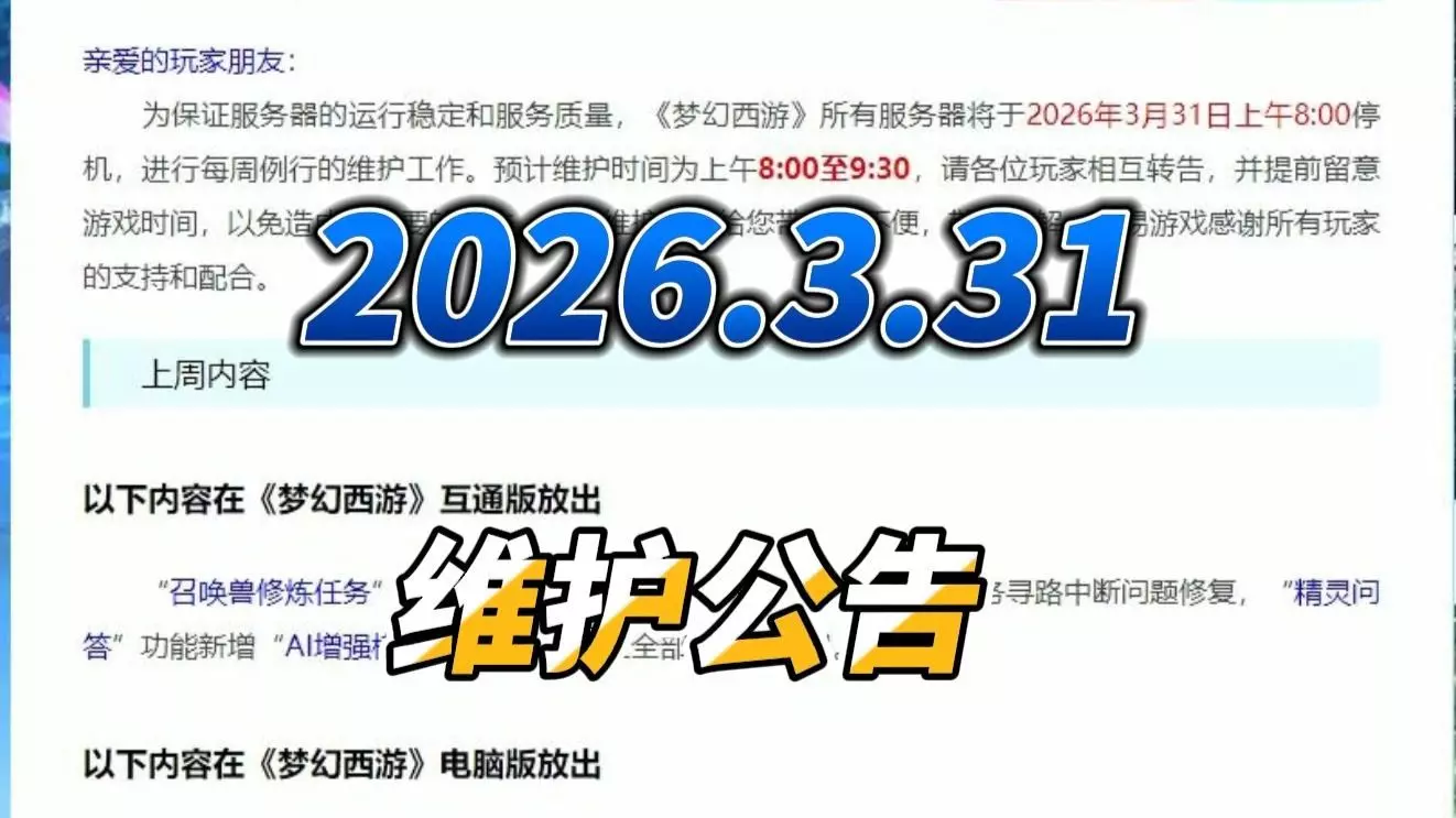 梦幻西游:2026年3月31日维护公告