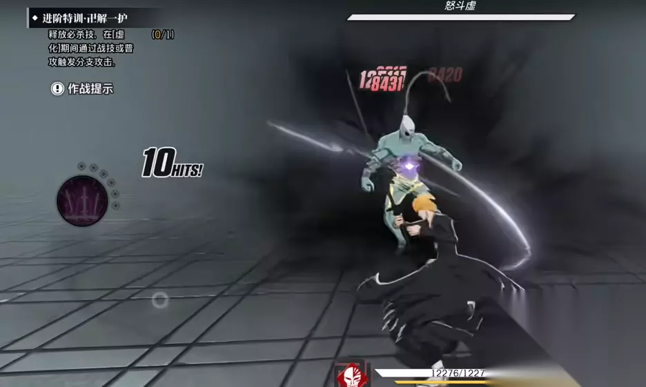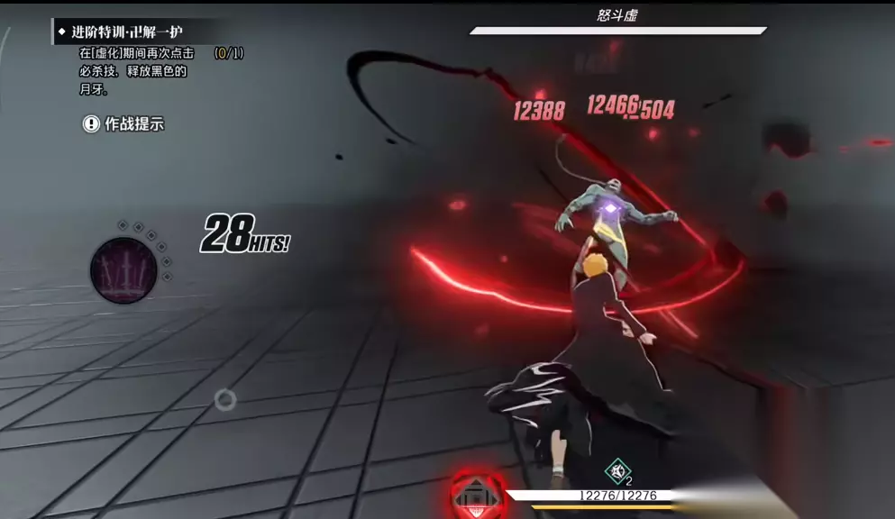 其必杀技可在激活后进入虚化状态,除大幅增强自身攻击力外,还能重置所有战技冷却时间,并将原有大招替换为“黑色月牙”。这一新技能为范围性斩击,向前方释放一道巨大的黑色剑气,对路径上的敌人造成极高单次伤害,具备极强的斩杀能力。在普通攻击方面,角色拥有四段连击动作,每次命中均可累积灵压能量。当能量充满后,将触发分支攻击,释放扇形扩散的剑气波,虽穿透目标数量有限,但在应对小规模聚集敌人时仍具备一定清场作用。