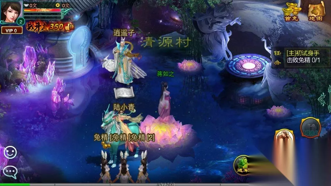 选择好角色后,大家就会出生在清源村。清源村作为各位侠士的出生地,一直有着较高的人气。作为新人,在清源村中完成NPC交给您的主线任务,不失为一条快速成长的好方法。轻松的自动寻路及一键任务方式,让您不但能熟悉各种游戏操作,更让您在游戏初期能够积累一定的启动资金、药品和装备,并为日后的江湖闯荡做好准备。