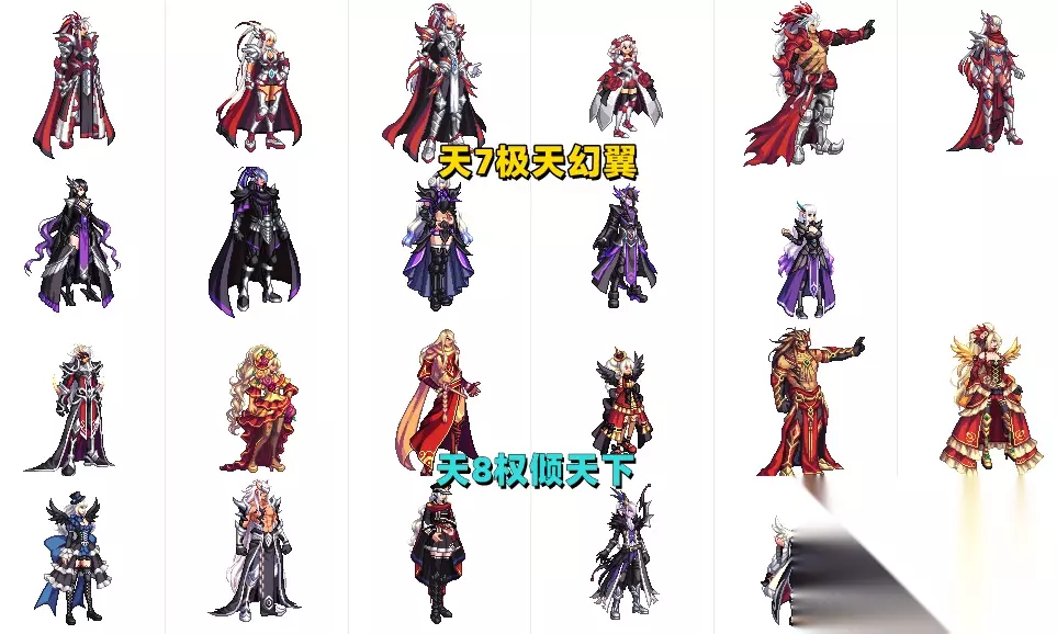 【第8套:权倾天下】,说个热知识,这是后期天空套中,唯一没有特效的天空,也是最便宜的一套天空之一,个人比较推荐女格斗,其他职业都一般。 【第9套:天羽夜华】,这套天空有普通和黄金2种配色,一定要选择黄金配色,俗称的黄金甲,推荐职业:全职业都可以驾驭,很有一股雍容贵气感。