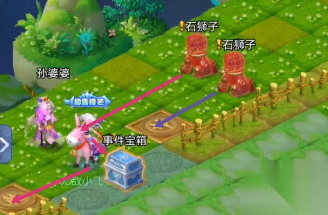 4、除秽迎新:每天都要重新打一次领取奖励,一个机关,两个小游戏,三个打怪,均可获得一个事件宝箱,全部清理完成会获得一个通关宝箱。 机关:石狮子需要归位乾坤,攻略如图