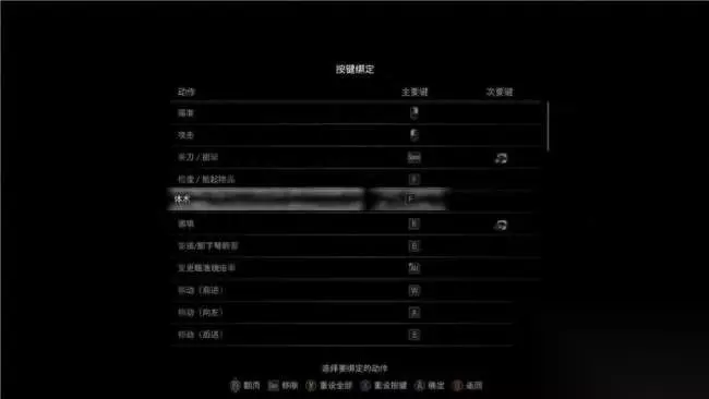 游戏操作: 键鼠操作 移动:ASDW 视角移动:前后左右方向键 瞄准:鼠标右键 射击/攻击:鼠标左键 互动/检查/拾取/体术:F 重新填弹:R 变更瞄准镜倍率:Alt 举刀/招架:空格 奔跑:Shift 蹲伏/站立/闪避:E 快速转向:Q 指示阿什莉:Ctrl 切换武器(种类):数字键1-8 切换武器(内外侧):鼠标滚轮 打开暂停菜单:P 打开地图:M 打开手提箱:Tab 菜单确定:空格 菜单取消:鼠标右键 菜单光标移动:ASDW 菜单标签切换:Q/E 菜单变更选择:Z/C 菜单重设:R 菜单打开新窗口:Shift 菜单显示/关闭信息:Ctrl 手提箱移动物品:Shift 手提箱整理物品:Alt 手提箱转动物品:Q 地图变更楼层:T/G 地图扩大/缩小:3/1 地图切换方向(固定/跟随):Alt 地图重置:R