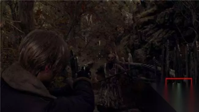 操作里昂开始前进,沿着山路一直往前走,蹲下走过一个栅栏进入一座破旧的农舍。