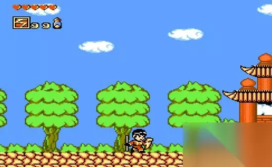 四、西游记 西游记本身难度并不高,但是因为语言不通的关系,导致后面几关无法轻易通关。尤其是在游戏中没有拿到猪八戒的经书和沙悟净的笛子,会让后面BOSS牛魔王防御大增,导致玩家需要200次攻击才能击杀。而在标题画面输入上、下、上、下、A、B后(1P),按开始进入游戏便可以开启秘籍。此时孙悟空不仅有金箍棒和大盾牌等最强装备,还有99的雷电道具,简直是开局就送了玩家一套神装。这个操作不亚于如今各类手游广告的效果。