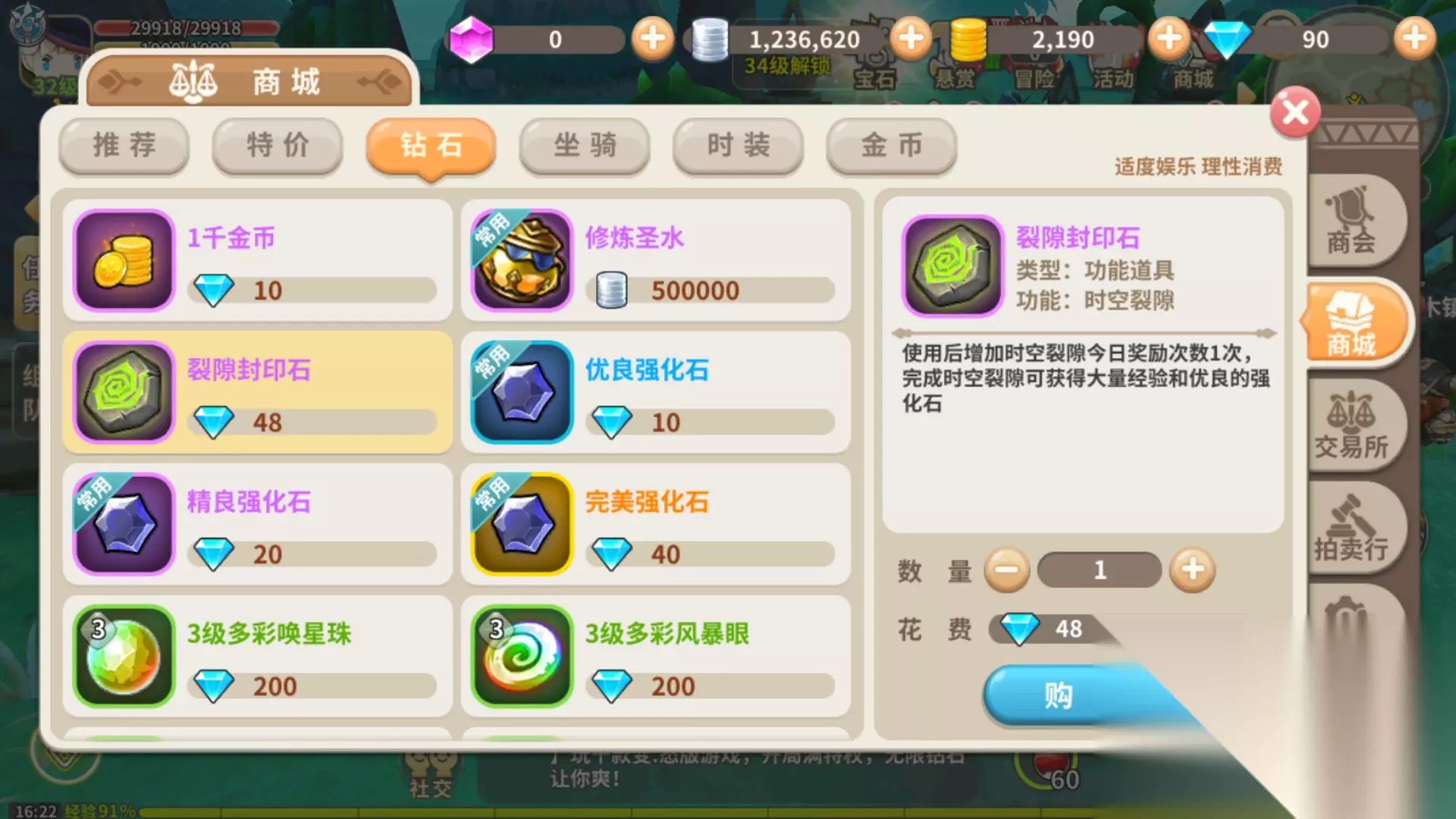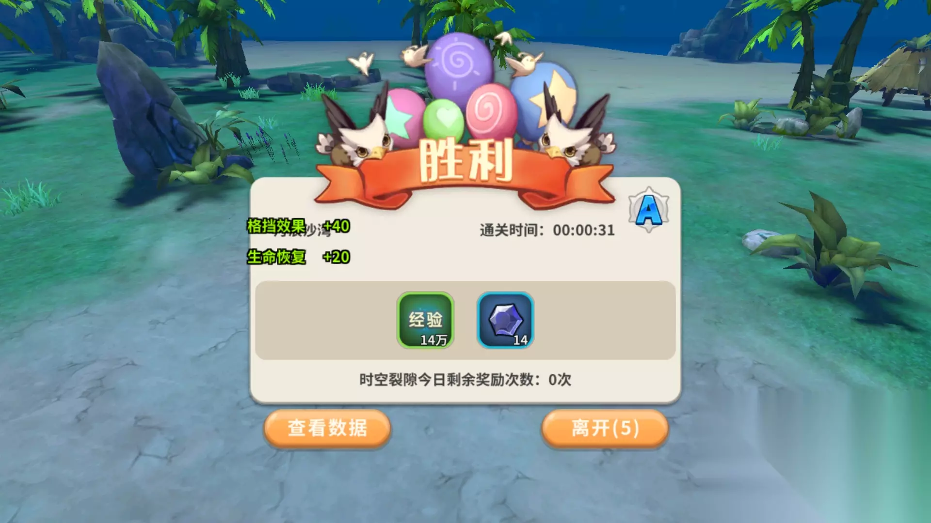 在通关以后可以看到玩家能够获得大量的经验以及强化石的奖励,这个还是小编24级时候的截图了,时空裂隙会随着玩家的等级提高而提高奖励,同时也会对应的去提高难度,玩家们要注意了哦。