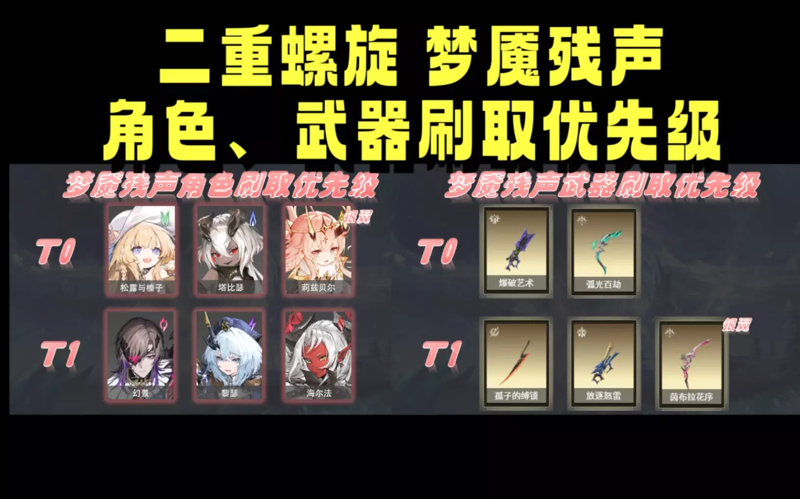 这是针对RPG游戏《二重螺旋》1.1新版本的入坑教学视频,讲解了“梦魇残声”周本的进入方式、刷取规则,还介绍了角色密函的获取、兑换以及角色刷取的操作流程,帮助萌新快速上手游戏内容。