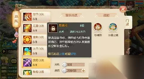 对于这个技能,可以说是聊胜于无,很多时候一个合格的天音寺都会选择醍醐灌顶。除非是挂野的时候,完全不需要担心队友的自身血量,那么这时候可以使用无量净世咒来给队伍增加一些输出,提高队伍刷怪的效率也是一种不错的选择。 门派连携技:怒魂引、醉罗汉
