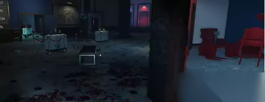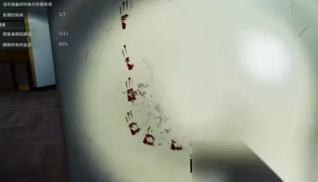 3、放置一个紫光灯,可以看到场景中的血迹变成了亮红色。 4、然后先清理卫生间的血迹,同时清理卫生间的垃圾。