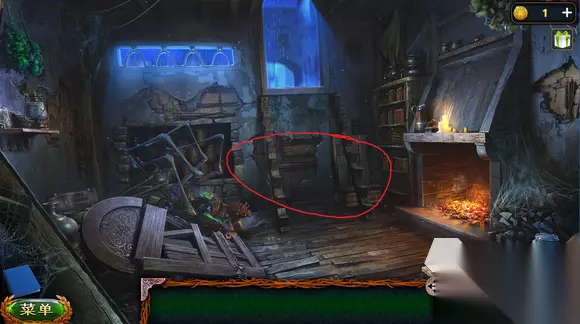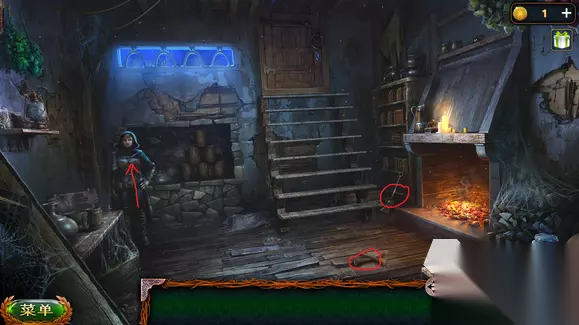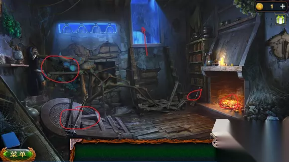 片头动画结束后,点击女孩,会有一只蜘蛛怪进来造成威胁,先点击地上被砸坏的木门,可获取铰链,随后拾起壁炉旁的铁锹,在炉子里铲煤,对蜘蛛怪物的眼睛撒进入,之后利用铰链插进它的身体。怪物解决后,将楼梯修好,之后就会跟着剧情前往墓地。