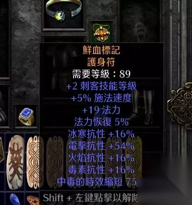 搭配了高跑,和抗性。in了一颗15ias10r的珠子。配合武器的30ias打到安置陷阱9f急速。题外话。高跑这东西。哪怕tp。也是跑的快N爽。总之,有更好,没有也可以。在前期军帽也是非常物美价廉的选择。 项链方面选择可以随意一些了。因为手套固定的法拳或者塔格奥。技能腰带。这两个部位基本无法用别的来代替。所以选择一条5FCR的项链就够了。看重是项链的其他属性。