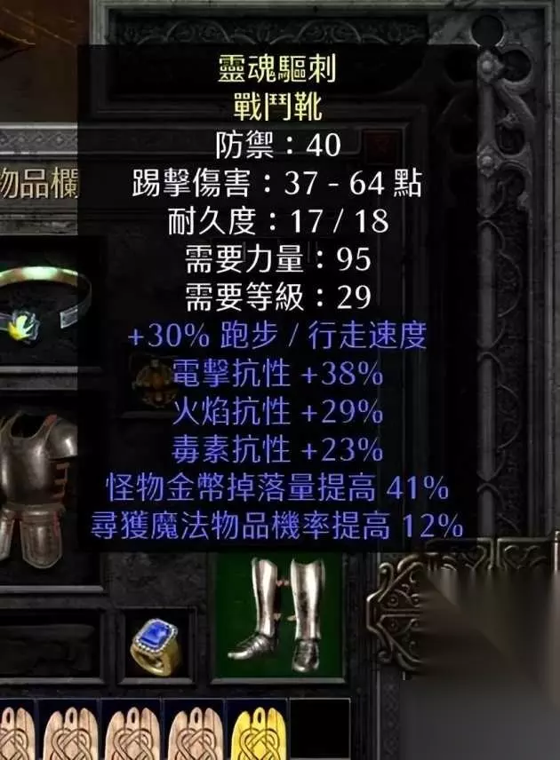 海量的LR和75的PLR在瘟疫副手替换掉的情况下。N爽。当然。由于没有加敏捷。也导致了。0dex失败。配合主手的巨鹰爪。无奈的加了19点dex。(心痛) 关于鞋子。 目前主流的还是黄金百抗鞋。这个东西看缘分。抗性缺啥补啥。