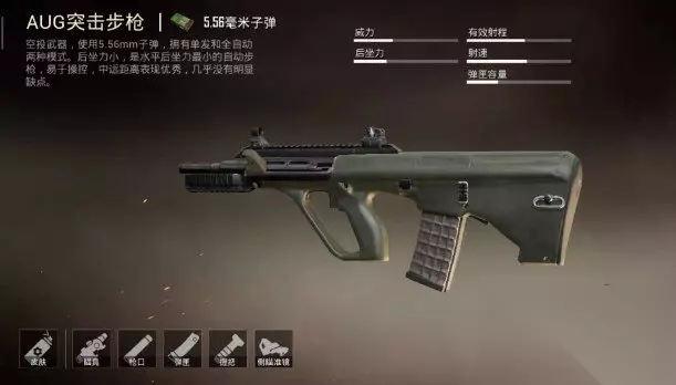2.AUG 全图刷新的散弹枪这款枪最大的特点就在于能够实现无后座力的连续开火模式。而这也让很多喜欢打近战的玩家爱不释手,最关键的是弹道实在是太稳了,即便是在高倍镜的状态下,也能轻松的进行扫射,绝对上手最舒服的一把步枪了,和其它的步枪有着质的区别。