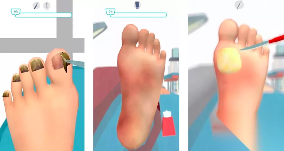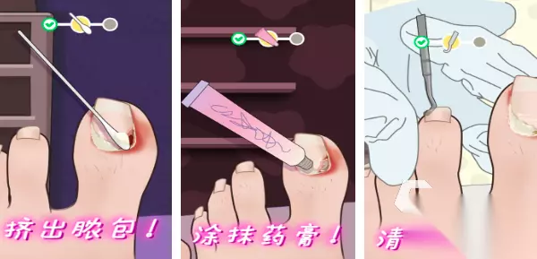 覆盖足部护理全周期流程:从脓包引流、角质层软化剥离,到趾甲修形、美甲上色。工具库包含指甲剪、死皮推、点钻笔等八种器械,每项操作均设置物理反馈机制。美甲系统支持自定义图案、闪粉密度与涂层厚度,细节还原至微小鳞屑清除过程,满足深度解压需求。 高速下载 普通下载 5、《修脚游戏》