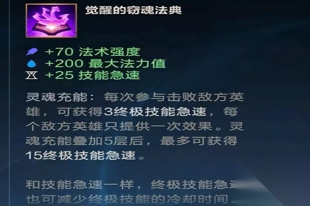 2、远程控制辅助可以用火男,歌姬,拉克丝,安妮等。 ①第一件建议直接窃魂法典,整局游戏大招使用率很高,而且下路赢了直接就是2层,保证下一次再和对面碰上,还有大招。