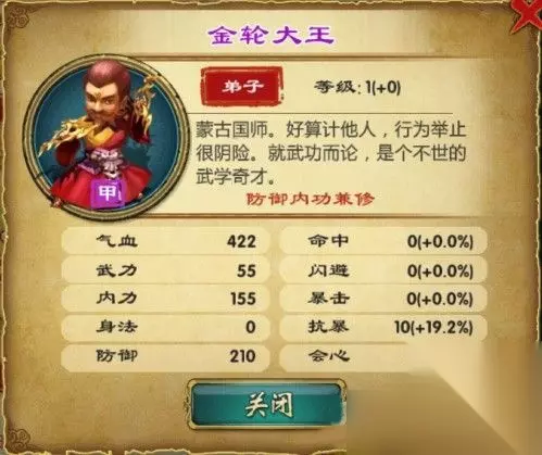 《武侠Q传》中的金轮法王是比较热门的甲级弟子,取自金庸笔下《神雕侠侣》小说,实力极为强悍心胸却也狭隘,在小说中虽不待见,在游戏中确实炙手可热的,那么这个实力强悍的甲级弟子到底有何突出之处呢?下面就由小编来为大家介绍一下吧。 《武侠Q传》金轮法王属性全面解析