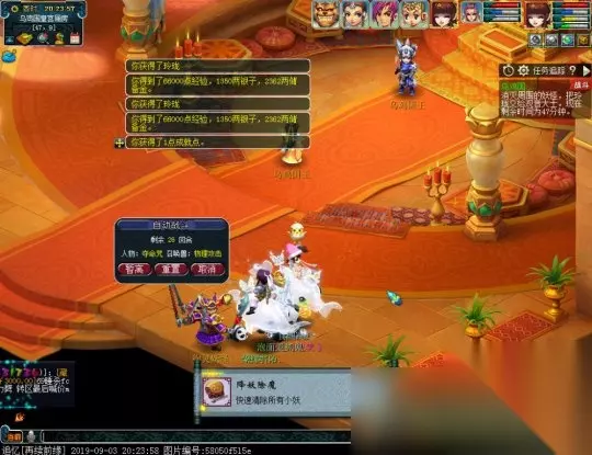 (2)选择第二个选项“逗一下就跑(嘲讽当前怪物)”,20秒内找到第二只,继续选择第二个选项“逗一下就跑(嘲讽当前怪物)”,在时间内找到第三只,选择“准备好了”,可同时干掉三个小妖,相应的奖励经验也是3只的累加。(若20秒内没找到第二个则进入战斗)