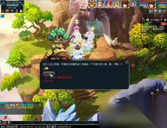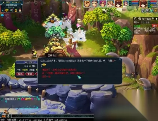 (2)选择第二个选项“逗一下就跑(嘲讽当前怪物)”,20秒内找到第二只,继续选择第二个选项“逗一下就跑(嘲讽当前怪物)”,在时间内找到第三只,选择“准备好了”,可同时干掉三个木妖,相应的奖励经验也是3只的累加。(若20秒内没找到第二个则进入战斗)
