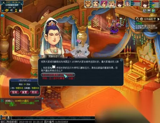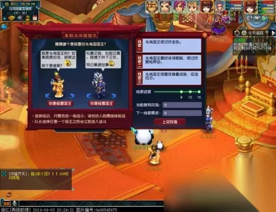 第六环:BOSS战。 (1)点观音姐姐一键上交玲珑获得真假国王的线索。