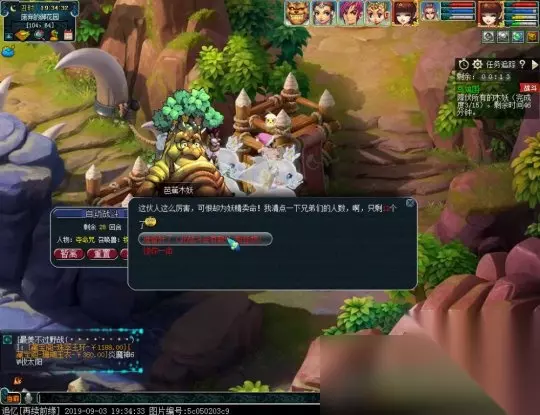 第一阶段降伏木妖:需要打败15个木妖,坐标随机,比较之前alt+a切入老副本而言新增了3个对话选项,有2种战斗打法。 (1)选择第一个选项“准备好了”,即刻进入战斗,与之前的老副本没明显差别。