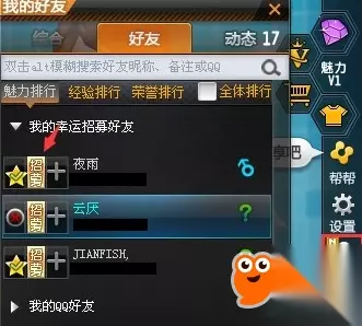 幸运招募活动 活动日期: 2017年7月20日-7月31日 活动内容: 在游戏内幸运招募系统中,只需点击我的幸运招募好友列表中,幸运玩家昵称左侧的招募按钮,就算成功发出邀请哦~邀请一次获得50点券,每人每天最多可发送5次招募哦~ 【入口如截图:飞车客户端右侧好友→我的幸运招募好友→点击招募按钮】