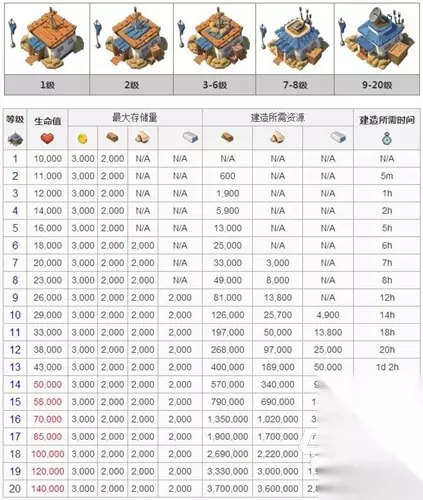 建筑设施无非是有有六种,他们分别是经济类设施、支持类设施、防御类设施、原型防御设施、神像、装饰物这六种;然后其中还分别各有各自的建筑,下面就慢慢的细谈。 经济类设施:有关资源的是铁矿、锯木厂、木材库、石材库、钢材库、采石地、金库。其他类型的建筑就是民房和保险库。该经济的设施可以获取一定的资源量;其中还有一个特别重要的是保险库,他能帮助玩家减少基地被攻破的损失,同时也能保护一定的资源。