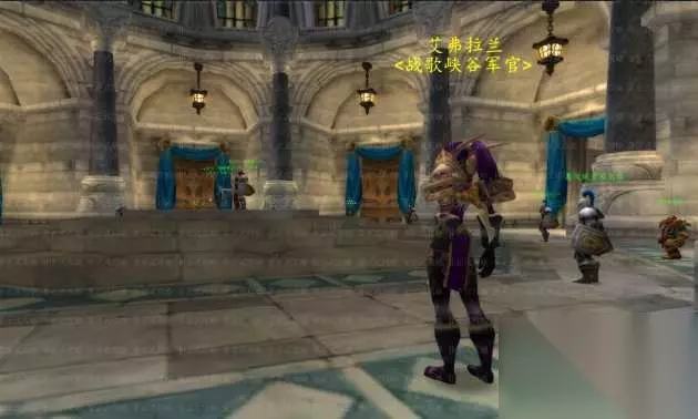 达纳苏斯:在战士区两侧的平台上分别有阿拉希、战歌、奥特兰克山谷三个战场的军官NPC。