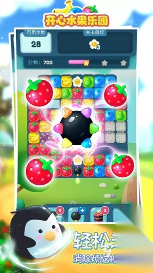 这是一款充满乐趣、耐人寻味的水果题材游戏,其整体画面设计色彩斑斓,各式各样的水果元素交织在一起,营造出一种格外悦目的视觉享受。玩法方面,它非常直观易懂,玩家只需简单地将三个相同的小水果组合在一起即可消除并获得分数。在这个过程中,不仅能够轻松愉快地度过时光,还能在不经意间锻炼和提升观察力及反应速度,尽管游戏模式相对直接,但却蕴含了不小的智力挑战。 高速下载 普通下载 优先233乐园APP下载 4、《开心水果乐园》