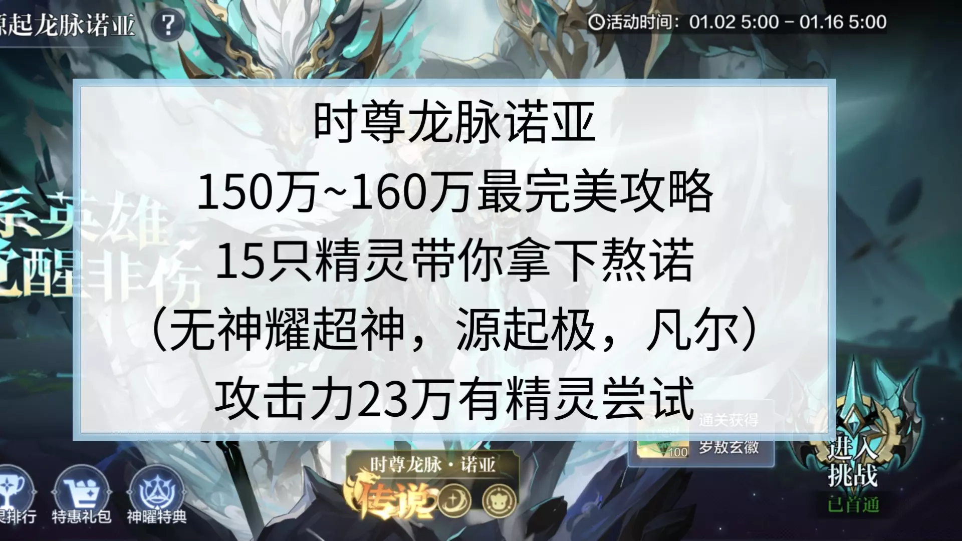 这是《奥奇传说手游》的攻略内容,展示了玩家用200多万战力的平民阵容挑战源起龙脉诺亚的战斗过程,还标注了各关卡可刷取的分数,为平民玩家通关该关卡提供参考。