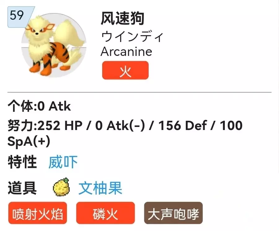 《宝可梦朱紫》风速狗双打努力值分配及配招推荐 性格:内敛(+特攻-攻击) 特性:威吓 个体:5v0攻 努力:252HP 100特攻156物防 太晶属性:草 道具:文袖果 技能:喷射火焰(5)磷火(机)大声哮(机)守住(机) 功能分析: 风速狗,残奥会的神!优秀的耐久,不错的输出能力,深不见底的技能池,宇宙第一真神之下的完美威吓手。 可以处理其他队友不好处理的钢系和草系宝可梦,磷火和大声咆哮进一步限制对手的物攻手和特攻手,为队友输出和强化创造更有利的环境。 这篇介绍《宝可梦朱紫》风速狗双打努力值分配及配招推荐的攻略就到此结束了,现在小伙伴们应该知道搭配方法了吧,希望这篇攻略能为小伙伴们带去一些帮助。