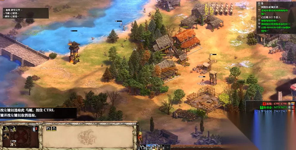 战役关卡中,上帝之怒任务需注意剧情触发机制。开局跟随紫色英雄Bleda时不要主动攻击野猪,待其召唤伏兵后立即将其击杀并接管基地。后续拯救村民任务需快速突袭西罗马帝国东南角的栅栏,解救村民后与SeaGate结盟可获得额外支援。其他关卡如天下第一骑需分阶段收集资源,优先摧毁敌方城镇中心获取食物,再逐步解救兵源与村民,最终集中兵力攻破东罗马帝国。
