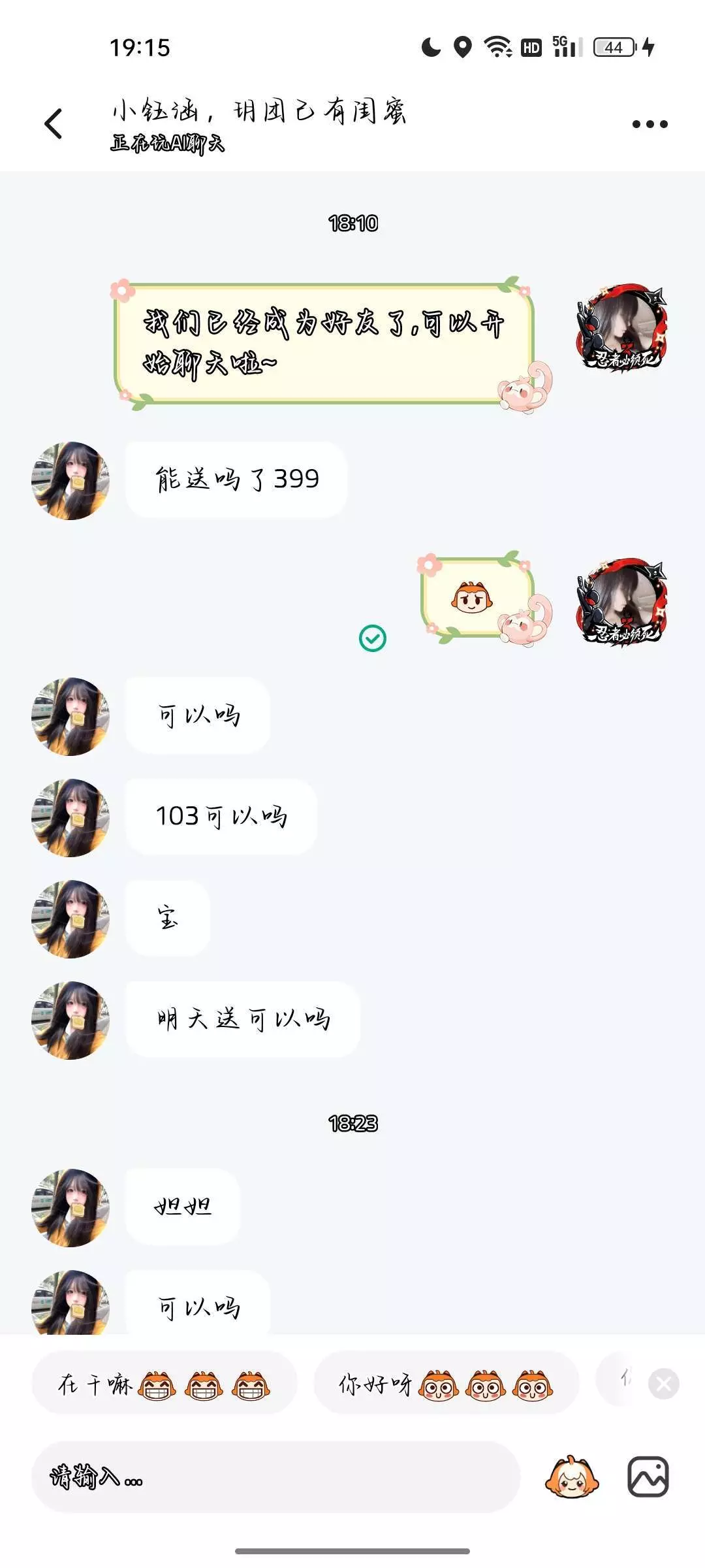 大家不要和我要礼物了哇 ,那是我朋友的钱耶 ,然后呢我积分涨到1000的话 有币的时候就送啦
