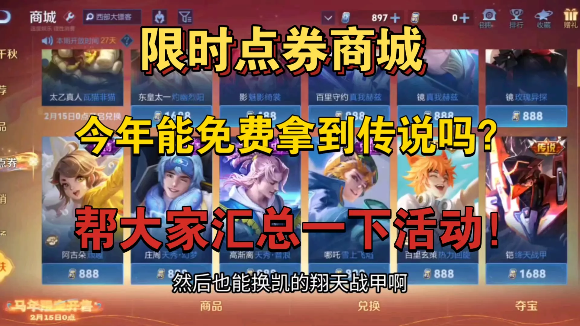 王者荣耀限时点券商城已开启,活动时间为02.12-03.12,多款皮肤可兑换。针对没攒够1688限时点券的玩家,该帖提供了补足点券兑换皮肤的方案,助力玩家兑换心仪皮肤。