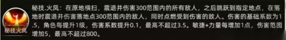 日娜使用的武器是刀; 角色的主动系技能是冲锋; 被动系技能是力量; 特色技能:秘技-火凤