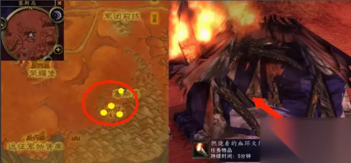 魔兽世界血环熔炉点燃火把在哪里 点燃方法: 建议玩家从地图偏东一点的那个门进入,左手边有一个像锻造的熔炉一样的小棚子,那就是了。把玩家打到的4个火炬在熔炉傍边使用之后就变成了火把,然后去挨个烧吧。 面对塞高斯正门(就是有2个小怪站着的那个最外面的门) 然后90度左转直走十几秒就到了。玩家从塞斯高最左的那个门进去,然后左手边就是那个炉子。在那个铁匠铺里打小怪掉火把点着了烧房子。 小提示:如果玩家等级低的话最好组人做,别一次在炉子那用完所有的,那些有时间限制的,先烧2`3个,然后回去在做些烧兵营。 任务步骤: 1、首先去地狱火半岛找断背岗哨的达克霍尔上尉对话接取任务。