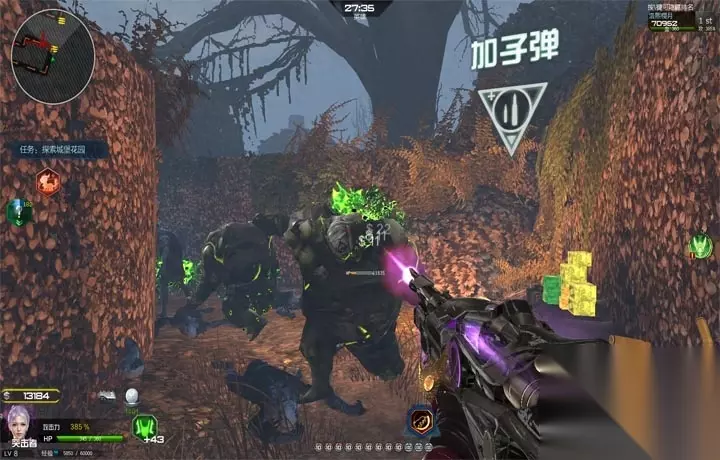 烈毒液弹:向目标区域喷射烈性毒液弹,在僵尸猎场里面会对怪物造成高额的伤害和超强的减速效果,毒液弹享受狂热的加成,但不能触发狂热。我们在跑图的时候可以利用左键触发狂热然后再切换毒液弹疯狂喷射,可以快速清理大范围的怪物,就算不能杀掉部分高血量的怪物也能让他们陷入减速之中,可以让同伴快速穿越怪物众多的地方。