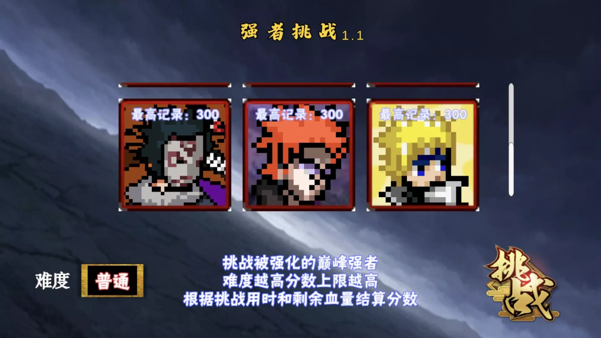 像素火影次世代强者挑战全300分合集,目前最快。