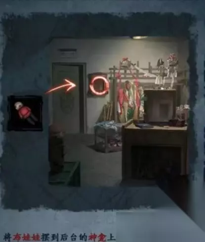 11.高能预警来到墓碑入口房间,在房间门的右手边神龛放入布娃娃,得到提示。