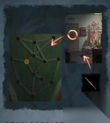 9.来到墓碑房间的桌前沾上红色油彩,用化妆笔点开左边大门开始一笔画游戏。