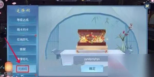 3、在礼包界面我们点击左侧菜单栏中的兑换码,然后在兑换界面输入上方的兑换码就可以完成兑换了。