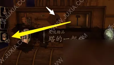91.红箭头处放梯子模型,白箭头处拿到奖章,下图放上奖章调整线路将移动到最右边,接着点击权杖展开获得长轴透镜;白箭头处移动滑块,黄箭头处获得塔的一部分