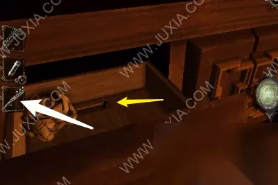 83.第三个抽屉拿到砝码形状的工具,灯泡处放上砝码形状的工具,戴上透视镜
