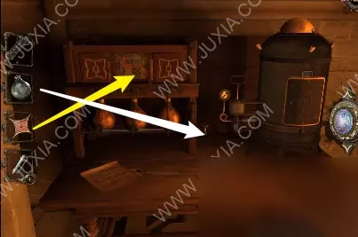 达芬奇密室The House of Da Vinci是一款充满文艺复兴机械美感的游戏游戏。本次为大家分享的是攻略的第五关过关攻略第二部分,本关的有着罗马数字谜题等多个谜题等你。 第五关攻略2 77.黄箭头处放入星形奖章,木块翻转,拿到木制圆柱,木制圆柱打开折叠得到曲柄