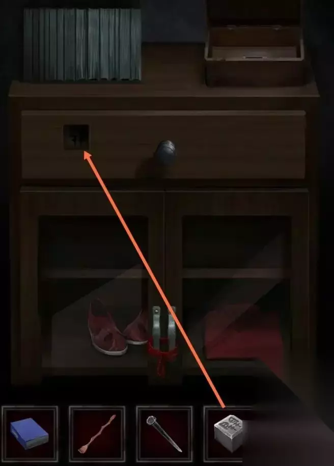 去寿衣店左边的房间,点击左边的柜子,点击柜子上的箱子,将所有的方块放入方格中即可打开箱子,如下图(010 -59000)。
