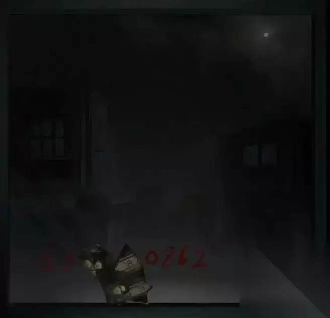 来到寿衣店右侧的房间,纸片人撞倒了书架上的密码盒。然后他来到裹尸布店左边的房间,检查了窗户。密码被照片遮住了。记下无障碍部分,即530862。