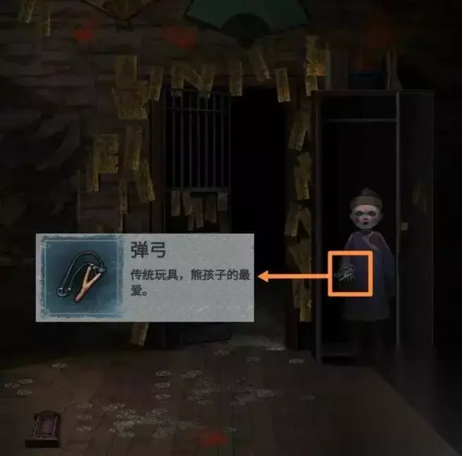 门打开后,从纸片人那里拿到弹弓。