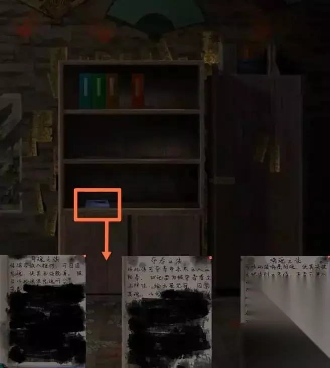 第五章的主要场景是道士的寿衣铺。 到达裹尸布店后,点击右边的书架,可以获得鬼笔记和蓝色模型书,还可以查看风水和脸书的线索。