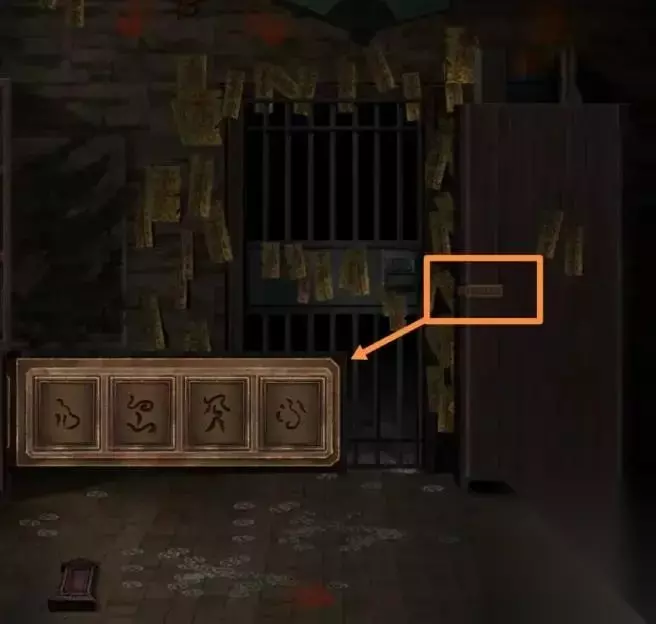 进入地下室右侧的房间,点击右侧柜子的密码,将四个特殊字符按顺序排列。